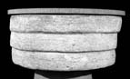 The drum as it now stands narrows from top to bottom in four plain horizontal bands (fasciae), each one stepped in from the one above. Underneath there is a shallow outer rim, about 10 cm (4 in) wide around its circumference within which the surface is cut back. The present setting does not permit examination of either upper or lower surface, so it is not known if there any holes, such as Lewis or cramp holes, which could prove an origin in Roman work.