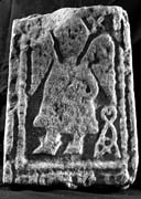 B (narrow): There is no trace of carving on this face, which appears to have been set in plaster or concrete at some stage.