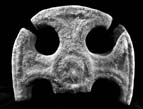 C (broad): This face needs to be seen in a good light, but it is clear that there is a raised central circle, filling the crossing, from which outline arms of type E10 extend into the upper and side arms. There is a raised cross, with a slight depression in the centre, inside the central circle.