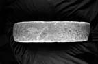 The surface is quite well dressed to a smooth, flat surface. The round, plate-like head was originally carved in one block with the shaft, which is completely plain.