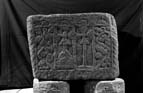 C (north): This again has the plant trails on the outer panels. They are identical to those on face A except that they are reversed (i.e. upside down). The centre panels contain stiff, stylised bush-scrolls.