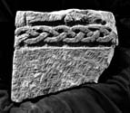 B (narrow): At the top are traces of carving, perhaps the termination of a straight-line pattern. Below is a border similar to that on face A, formed from a horizontally disposed three-cord plait, this time single-stranded.