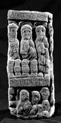 The story of the wedding at Cana, in which Jesus turned water into wine after being warned by Mary that there was none left, is based on John 2, 1–11. Like the Feeding of the Five Thousand it was from early times a reading for the Feast of the Epiphany, and like the latter scene was also regarded as prefiguring the Last Supper (Schiller 1971, 162–4). Early examples show Christ with the water pots at his feet, to which he points, sometimes with a staff, or else he blesses them. A witnessing apostle with a scroll or book, taken to be John from whose Gospel the story is drawn, likewise appears early, as on a fourth-century sarcophagus from Arles (ibid., pl. 464). Christ sometimes carries a staff crucifix. A servant or servants obeying Christ could also be included, and it is this detail which Hawkes (2003b, 361, pl. 22.7; Jewell 2001, 259–61, fig. 17.5) considered to be represented on a fragment from Breedon, Leicestershire. Mary appears at least from the sixth century in both east and west: for example she stands to Christ's right in the Syrian Gospels of Rabbula, c. 586 (Schiller 1971, pl. 467). In a Carolingian ivory a much developed iconography appeared, in which the wedding feast with the water pots and Mary's warning to Christ were shown as separate scenes, though side by side (ibid., pl. 470). Along with this, however, the older model showing a tight group with three figures — Christ, John and Mary, or Christ, Mary and a servant, with varying numbers of water pots in front — also continued or was revived (ibid., pl. 469). The Dewsbury version is clearly a revival of the earlier type, perhaps copied from a Carolingian ivory.