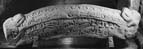 A (long): This face has a worn ridge with possible traces of a cable moulding. The roof area below carries a single row of type 7 tegulae. Under the end-beast's jowl to the left are two tegulae of a second row, but this gives way to a frieze which begins with two deeply incised semi-circles, the second one bisected by a vertical line. The rest of the decoration on the roof is in low flat relief. Next to the semi-circles is an animal, facing right and carved in low relief, with short curled tail and lowered head with pricked ears. To the right of this beast is a human form, lying on his side with scratched features and arms akimbo. His feet are splayed and set towards the animal; his head is markedly flat-topped. To the right is a blank area before, first, five reversed and angular S forms and then, at the extreme right, a disorganised two-strand twist formed by stopped and median-incised strands.
