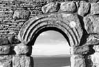 The arched door-head is carved from a single monolithic lintel on whose external face are three raised concentric semi-circles following the line of the arch below. The outer edge of the lintel curves on the left side but is more rectangular on the right.