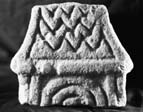 A (broad): The lower part of the head, probably of type C10 with wide curved armpits, retains its roll-moulding borders and is decorated with two rows of horizontal zigzag patterns set one above the other. The lower end has been left uncut. The shaft is flanked laterally by a narrow arched moulding within a double roll-moulding frame and seems to have been decorated with a human figure: a halo, hair and the forehead are all that now survive.