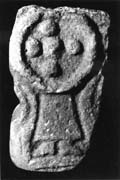 One other potential meaning for this encircled feature needs to be added. This is best approached by reference to a cross-head from Brigham in Cumberland where there is a different kind of association of encircled bosses and a form of crucifixion (Bailey and Cramp 1988, ill. 147; see also Bromborough 5 above, p. 55). Here, in a Viking-age context, the crucified Christ is represented by a head placed over an encircled boss motif; the rest of the body is not shown. Discussion of Brigham has linked it to a series of Irish (and one Manx) crucifixions isolated by Roe (1960) which, among other characteristics, featured a central 'breastplate' set over Christ's body. The Calf of Man slab and Hovstad mounts show this in circular form (Roe 1960, pl. 7 and fig. 4) whilst on the Rinnagan plaque and elsewhere there are variant shapes (Youngs 1989, no. 133). Roe argued that this element alluded to the concept of Christ as High Priest of the New Covenant — a complex of ideas based on the prophetic passage in Psalm XIV ('Thou art a priest for ever after the order of Melchisadech') which was developed in Hebrews VI, VII and IX, and then further treated by Augustine, Ambrose, Prudentius, Sedulius and Venantius Fortunatus. It is possible that this Lancaster motif carried a similar meaning.