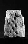 D (narrow): The upper part of this face is blank. Below is a left-hand border flanking worn relief ornament consisting of either serpentine animals or a broad-strand plait.
