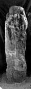 A (west): Below the rounded top is an arched panel, with lateral framing mouldings, containing a deeply-cut, tall and slender forward-facing figure, possibly holding a rod over his right shoulder; he wears a knee-length robe which droops at each corner. There are traces of a small rectangular panel below but any ornament it carried has now been lost.