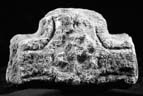 The fragment represents the central element of a (presumably) free-armed cross-head with parts of two (?lateral) arms surviving, together with the stub of a third arm; the wide curves suggest a head of type B9.