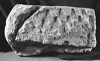 A (long): The ridge of the stone has been dressed. On the roof are two rows of tegulation type 2c with a plain border moulding to the left; any decoration on the vertical wall below has been cut away.