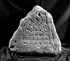 A (broad): This rapidly tapering shaft fragment has a broad undecorated base. The single panel of relief ornament above is flanked laterally by a flat cable-moulding border, well distant from the edge of the stone. Decoration consists of a median-incised eight-strand plait, the two outer turns pointed, set over two horizontal row of flat rectangular bosses. Between the plait and bosses is an arched area on which are traces of a further row of bosses.