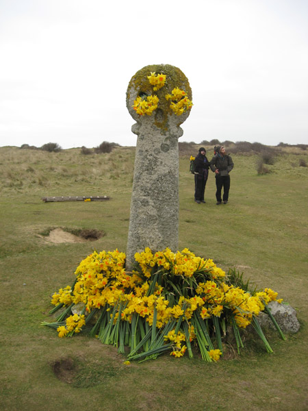 Perranzabuloe 1 decked with flowers for St Piran's day