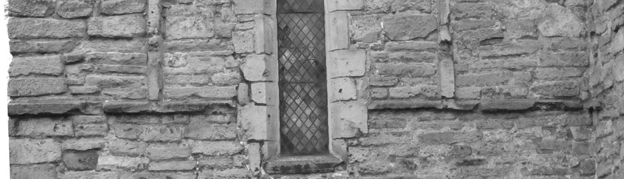 Repton 23a, b External view looking S at the N face of the chancel showing the string course at 51.30 OD and pilaster strips (nts) Plate: 390.